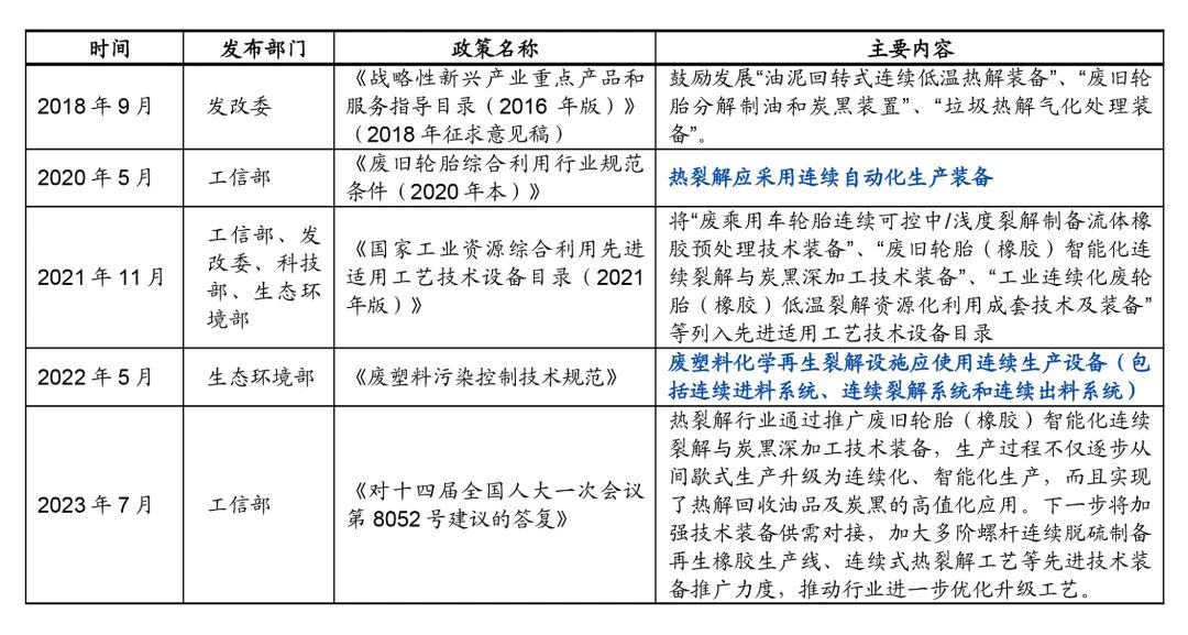 熱解技術(shù)主要是利用有機(jī)廢棄物熱不穩(wěn)定性,在無(wú)氧環(huán)境中通過(guò)精準(zhǔn)的控溫加熱,讓大分子轉(zhuǎn)化為小分子的液態(tài)油、可燃?xì)狻⒐腆w產(chǎn)品等高附加值產(chǎn)物。其中代表行業(yè)創(chuàng)新與技術(shù)實(shí)力最高水平的“連續(xù)式熱解工藝”,憑借廣泛的物料適應(yīng)性、充分的資源化能力及在節(jié)能降碳方面的潛力,備受廣大專(zhuān)家、學(xué)者的認(rèn)可,被譽(yù)為下一代的廢物處置“重大關(guān)鍵共性”技術(shù)②,入選國(guó)家產(chǎn)業(yè)鼓勵(lì)類(lèi)發(fā)展目錄,代表了未來(lái)熱解主流技術(shù)方向。